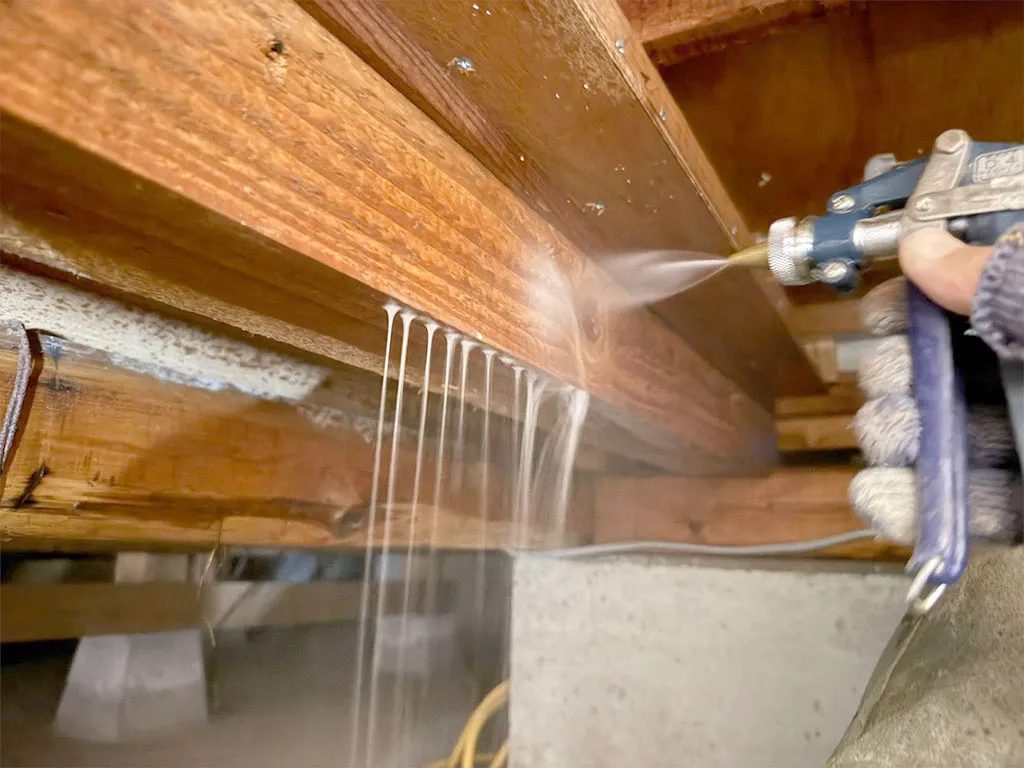 防腐防蟻施工:木材や壁の隙間に侵入する害虫の対策を行い、ホウ酸系の防腐防蟻剤を使用